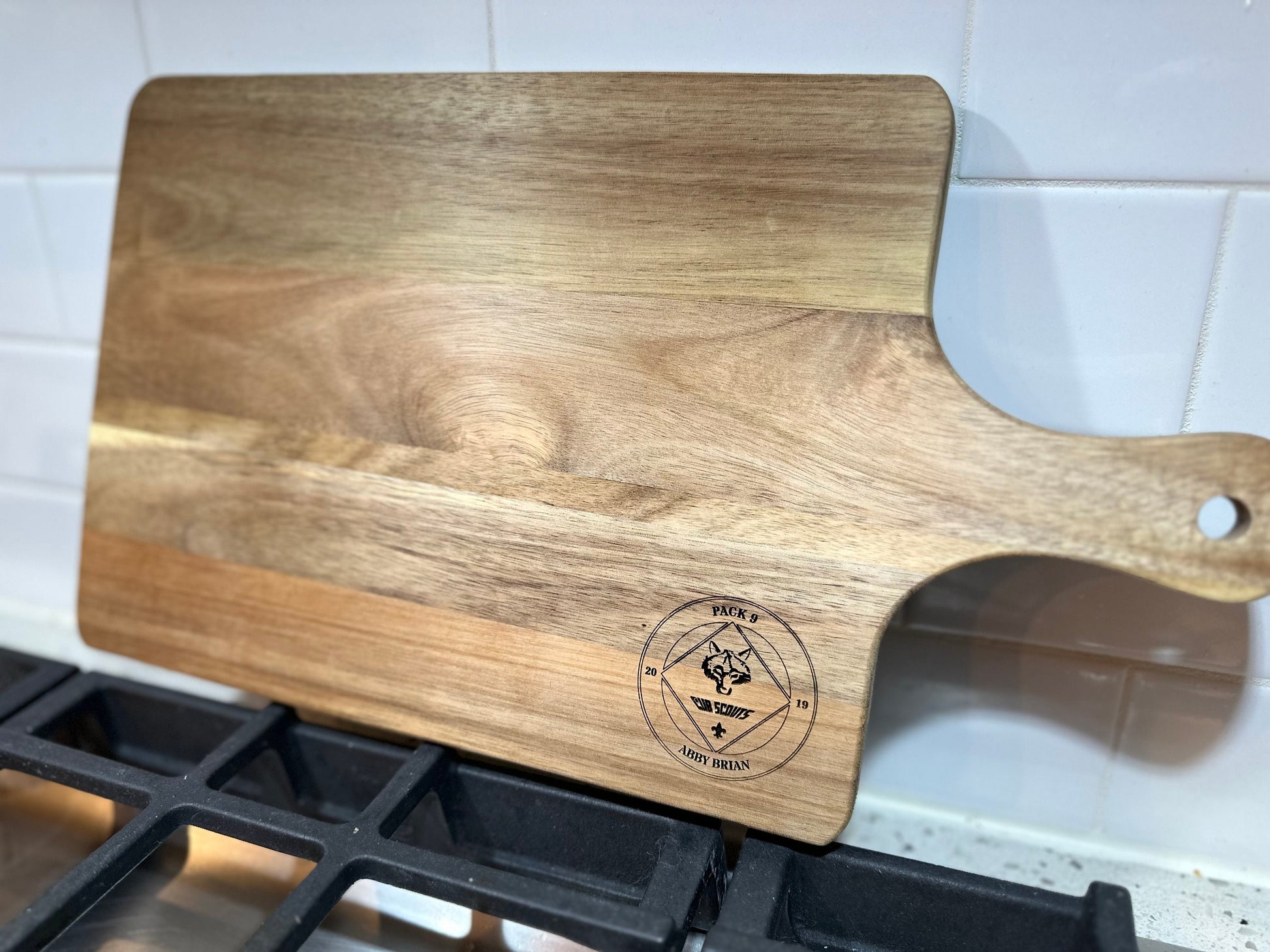 This custom, made to order cutting board does just that. Celebrate your leader or Scout's hard work and dedication through this unique, one of a kind gift that will be enjoyed much more than what is offered elsewhere on Etsy.